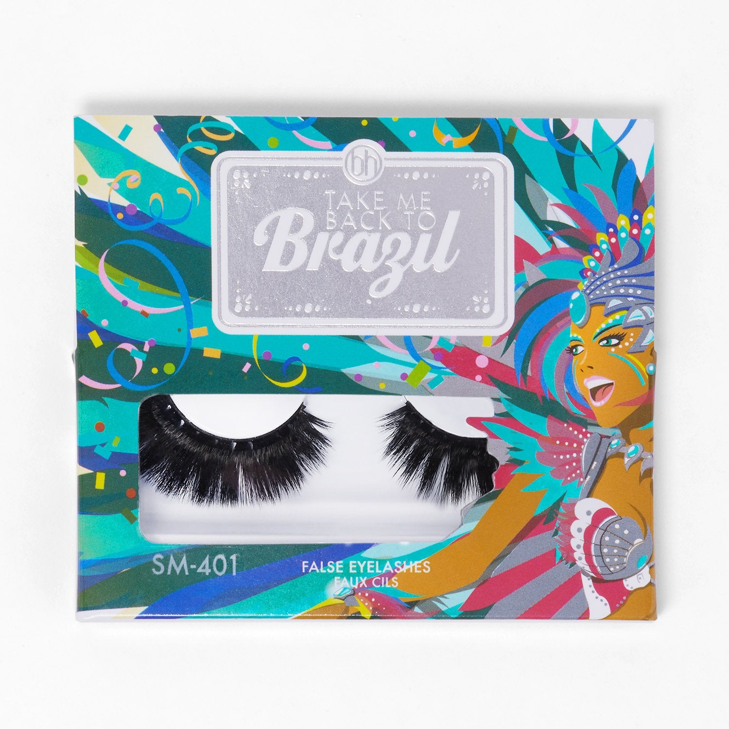 For eyes that captivate like the spirit of Carnival, Take Me Back to Brazil False Eyelashes are the ultimate accessory. Crafted with ultra-black synthetic mink, these lush, fluttering lashes are easy to to use and flatter every eye shape instantly. Featuring a comfortably thin band that blends with your lash line for a seamless look, these uniquely layered lashes give a boost of volume, length and dimension to create next-level impact for any occasion.