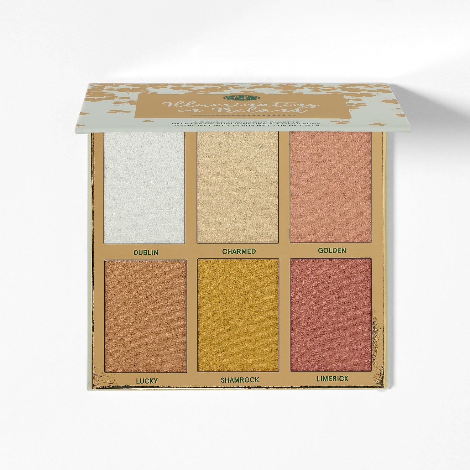 Capture the radiant charm of the Emerald Isle with the Illuminating in Ireland - 6 Color Highlight Palette, featuring six highly pigmented shades ranging from warm coral to golden honey and pale champagne with green shimmer. Whether worn alone or blended, the buildable formula lets you achieve a gleaming sea breeze-kissed glow.