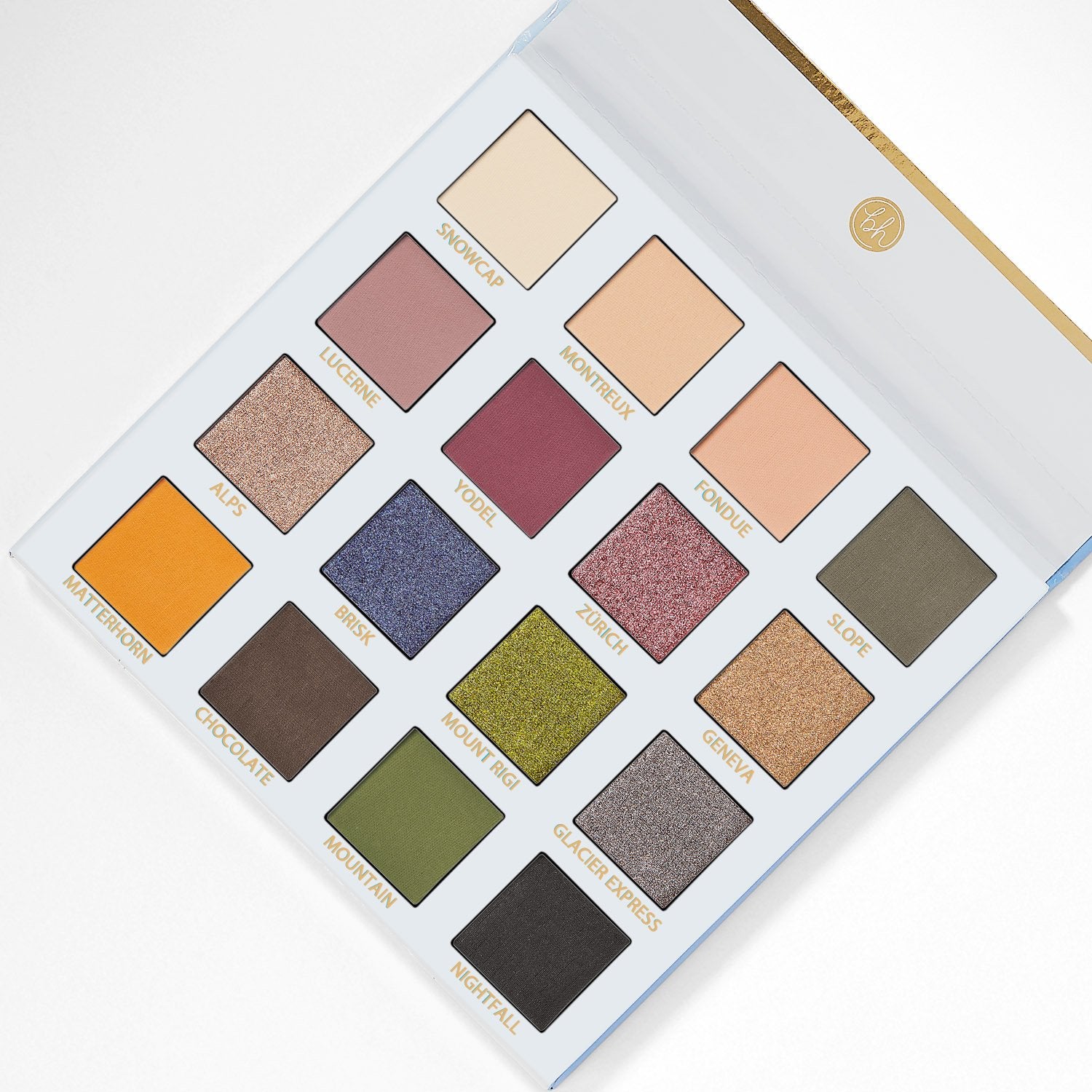 Revel in the majestic allure of the Swiss Alps with our Smitten in Switzerland – 16 Color Shadow Palette. This elegant array of pigment-rich hues and finishes—ranging from lush shimmering greens and azure blues to velvety-soft mattes in violet and neutral shades—lets you create stunning eye effects to achieve the ultimate après-ski look.