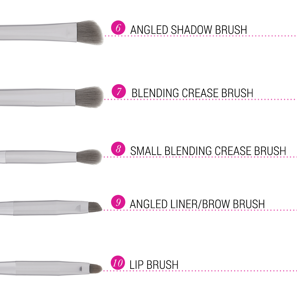 Mirror, mirror, on the wall, what are the coolest brushes of all? Our Smoke n Mirrors 10 Piece Makeup Brush Set! This assortment of superior-quality face and eye makeup brushes is designed to deposit just the right amount of pigment and blend expertly for foolproof, flawless full-face looks. Brushes feature shiny gunmetal handles and plush synthetic gray bristles that work with liquids, creams and powders. The collection comes in a matching zip-top pouch for convenient storage and travel.