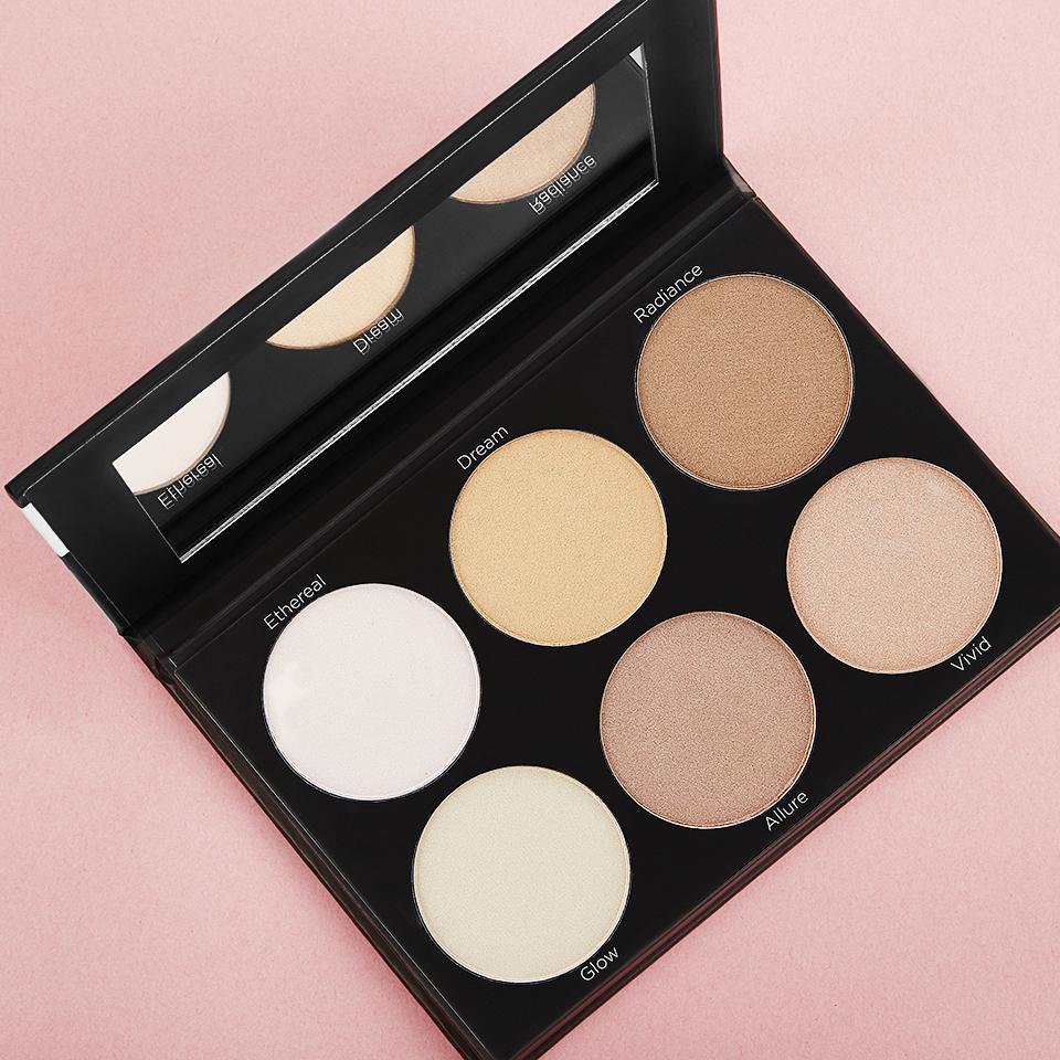 Let there be light! Create a variety of flattering highlighting effects with our 6 Color Highlight Palette, a mix of shimmering shades that accent your features beautifully. Shades range from pearly ivory to copper and bronze and flatter all skin tones.